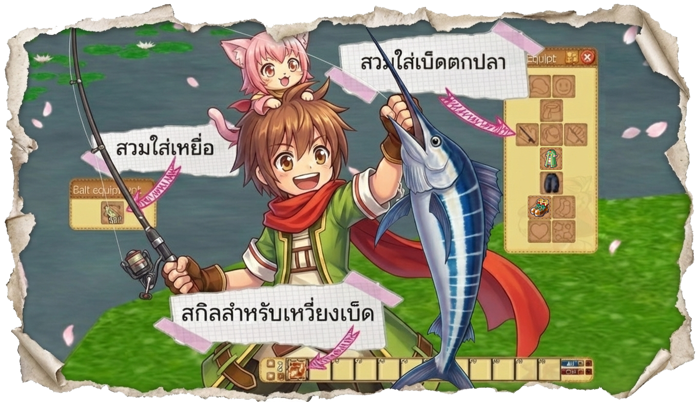 สามารถซื้อเบ็ดตกปลา และเหยื่อ ได้ที่ NPC Fishing Gear Store Clerk