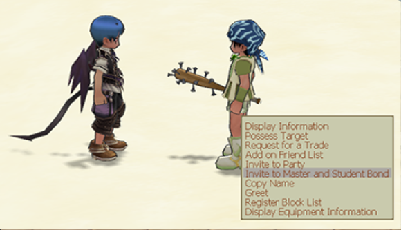 คลิกขวา ที่ผู้เล่นที่ต้องการให้เป็นอาจารย์ แล้ว เลือก “Invite to Master and Student Bond”